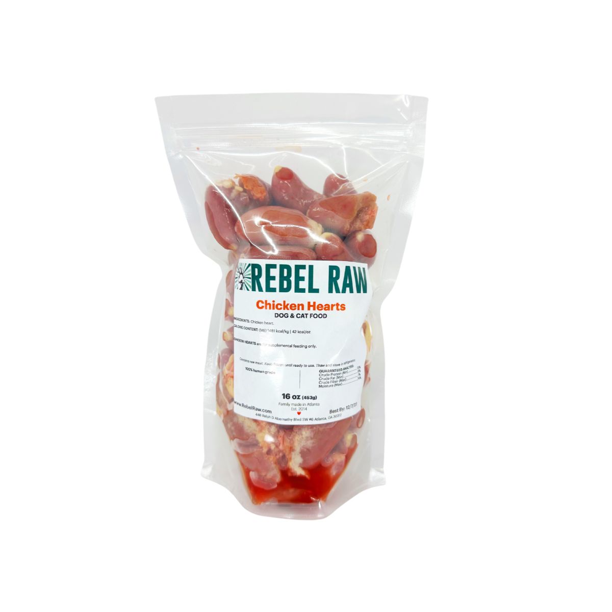 Cats love chicken hearts! And there’s a good reason why. They are an excellent source of taurine which cats need to survive and can not produce on their own. All members of the cat family, from a tiny 6 lb house cat to a 450 lb lion, are instinctively drawn to hunt for prey that contain high levels of taurine. Chicken hearts also provide Vitamin A, B6, and B12, as well as iron and niacin. These vitamins and minerals improve cardiovascular, vision, immune and digestive function in cats and dogs. Our chicken hearts are locally sourced from Georgia's Springer Mountain Farms, known for their humane certified poultry. Available in convenient, easy to feed portions. Cats need 2 - 3 hearts a day if they're not already getting taurine in their diet. The great thing about taurine is that you can't feed too much. Any excess is excreted in the cat's urine.